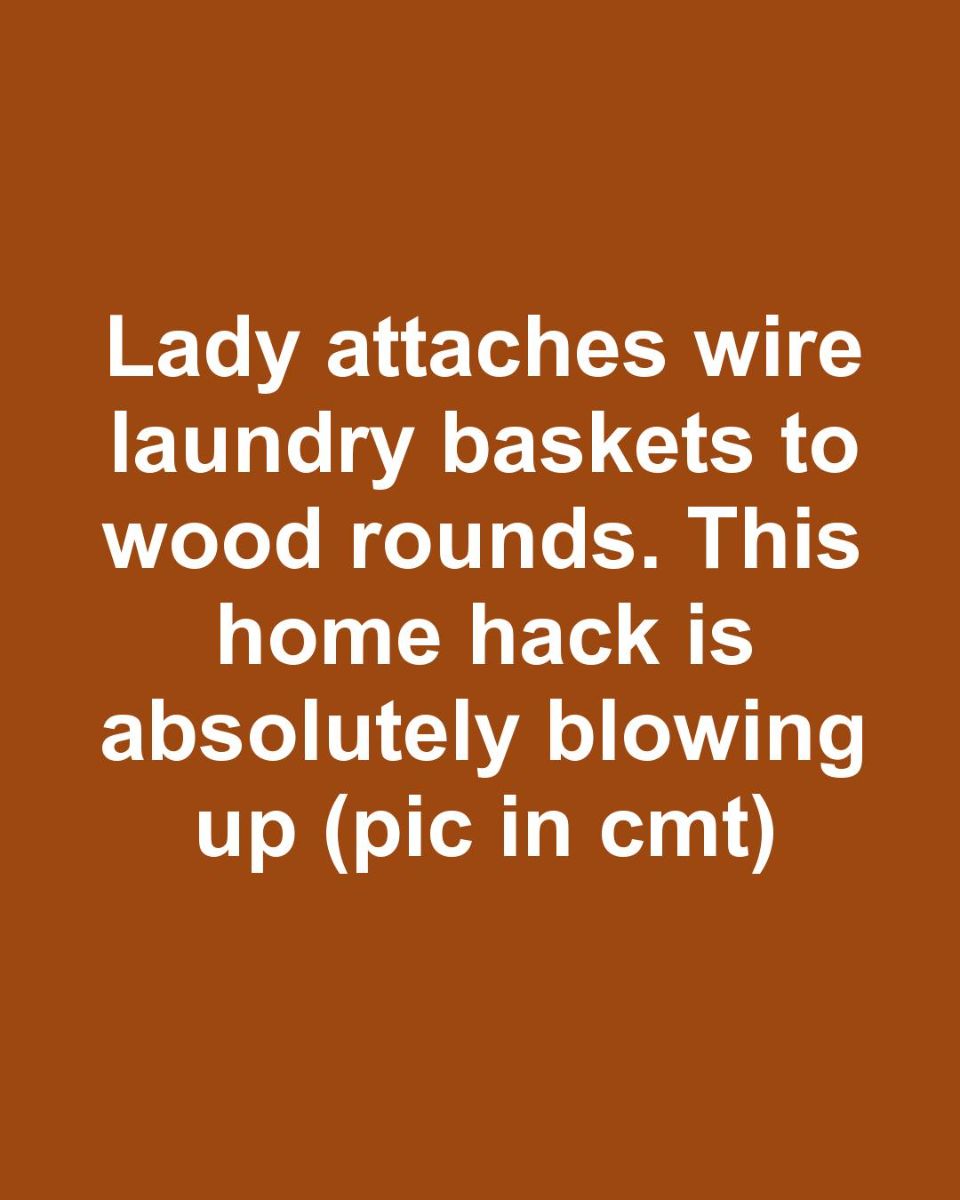 Lady attaches wire laundry baskets to wood rounds. This home hack is absolutely blowing up
