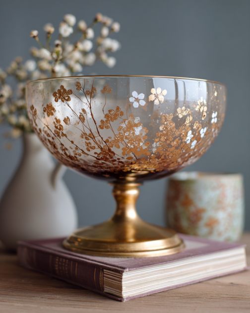 This DIY decorative bowl can be an elegant centerpiece on a dining table or a charming addition to a coffee table. Pair it with vintage books, candles, or seasonal decor to enhance its visual appeal. Consider placing it on a console table in your entryway, filled with decorative spheres or potpourri, to welcome guests with a touch of sophistication. The glass material complements various interior styles, from modern minimalism to rustic farmhouse, making it a versatile piece in any home.