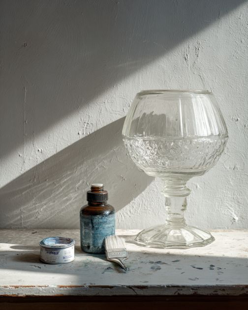 Start by thoroughly cleaning the old glass lampshade with glass cleaner and a microfiber cloth to remove any dust or residue.