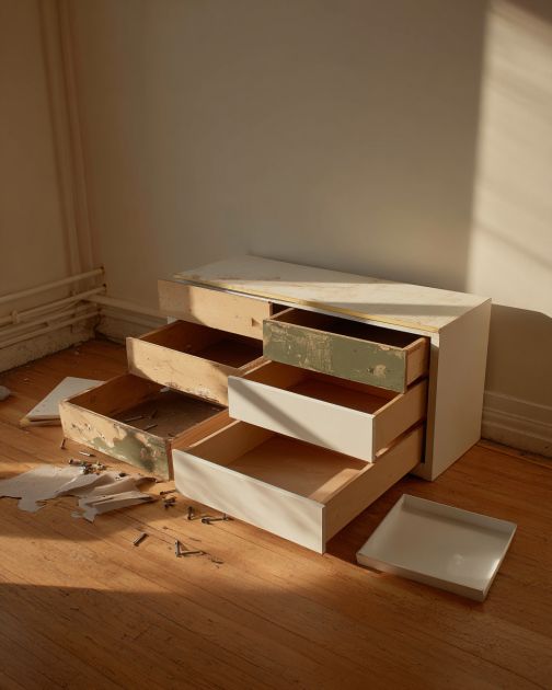 Sand down any rough areas or scratches on the drawers using medium to fine grit sandpaper.