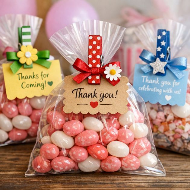 For party favors, clip a small note or thank you card to the clothespin and attach it to a bag of treats. This adds a personal touch and can be tailored to fit any event theme.