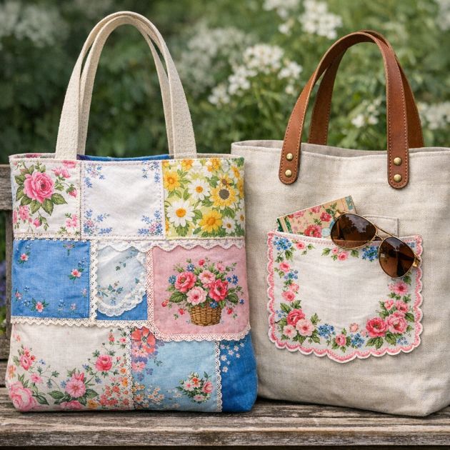 Give your vintage handkerchiefs a new purpose by incorporating them into tote bags or adding them as decorative pockets on existing bags. For a tote bag, sew several handkerchiefs together to form the front and back panels, then add a lining and straps. For pockets, cut a handkerchief into the desired shape, finish the edges, and sew it onto a bag. These unique designs will add a personal touch to your accessories.