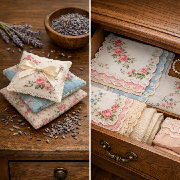 Vintage handkerchiefs can be repurposed into fragrant sachets or elegant drawer liners. For sachets, cut the handkerchief into squares, sew two pieces together, leaving a small opening, and fill with dried lavender or other fragrant herbs before sewing shut. For drawer liners, iron the handkerchiefs flat and place them in your drawers to add a touch of elegance and a subtle scent to your stored clothes.