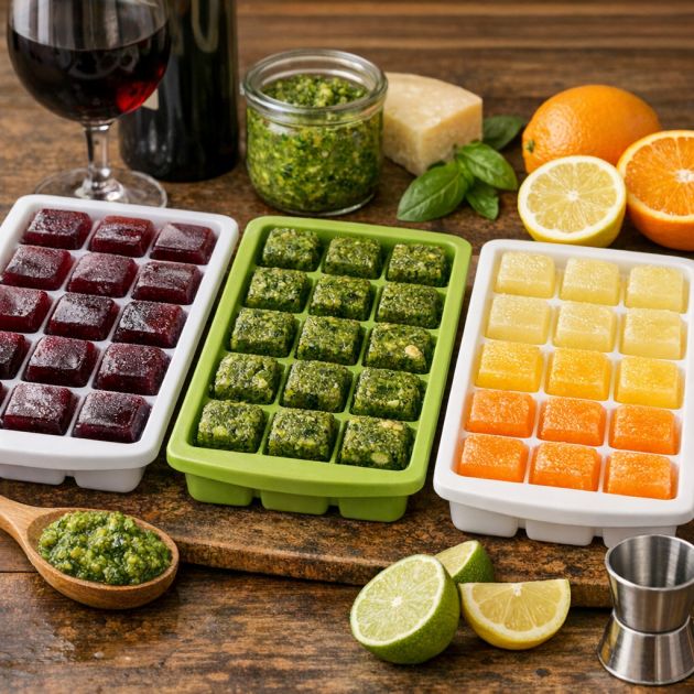 Don’t let leftover wine or citrus juice go to waste. Pour them into ice cube trays and freeze for future use. Wine cubes can be added directly to stews and sauces for added depth, while citrus juice cubes can be used in dressings or cocktails. Pesto can also be frozen in trays, ensuring you have a burst of flavor ready for pasta or sandwiches whenever you need it.