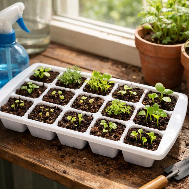 10. Use Trays as Tiny Planters for Seedlings and Kitchen Herbs